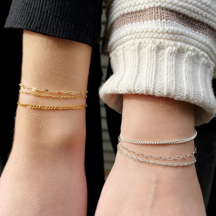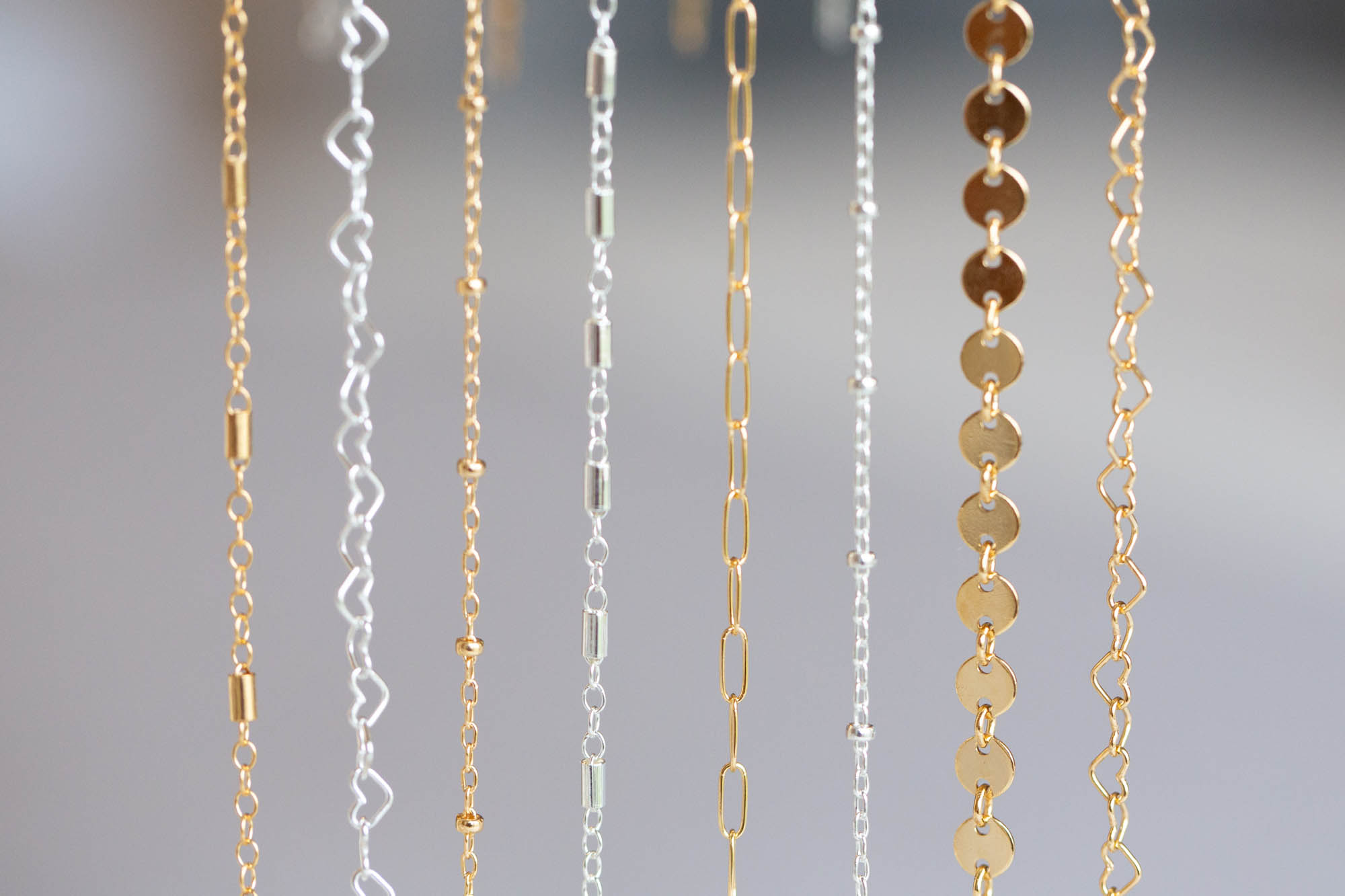 Choose from our exclusive 14k gold-filled and sterling silver chains to create your custom bracelet, anklet, necklace, or ring—sized and welded just for you.